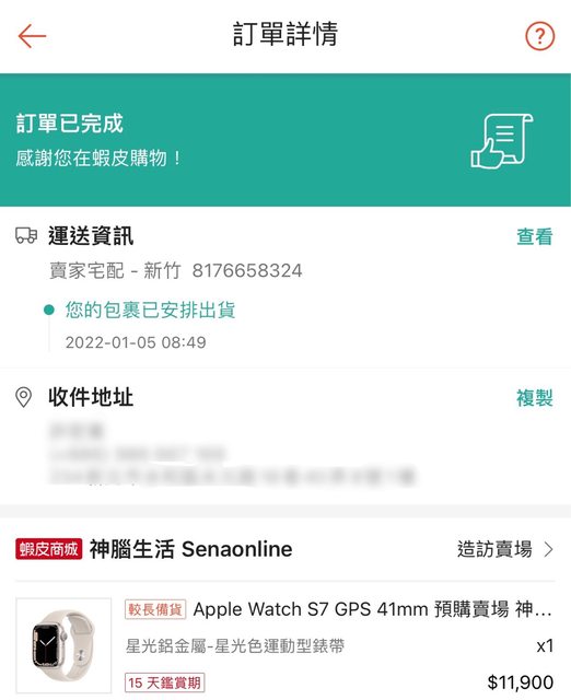 [保固] 已過保,蝦皮神腦商城2022/1/5購入