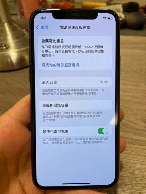 平常都有裝殼,外觀正常,電池健康度67%,手機已恢復原廠