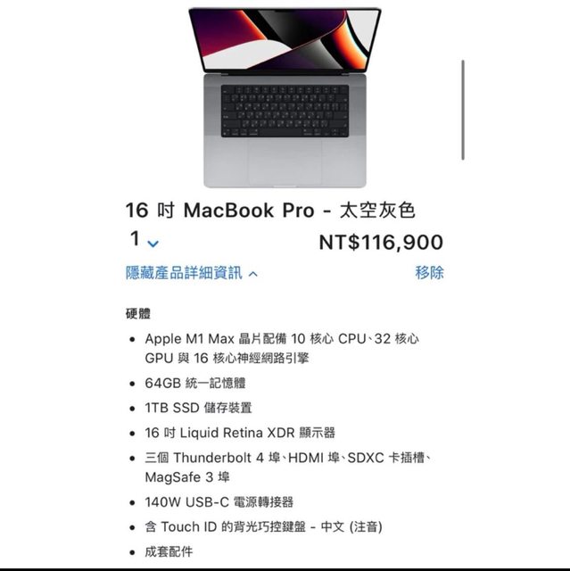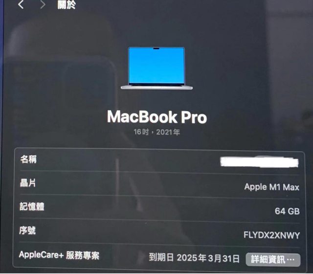 百分百近全新的Apple MacBook Pro 16吋M1 max