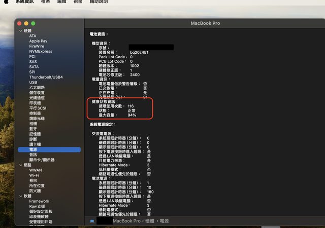 中文鍵盤,電池循環116次,健康度 94%