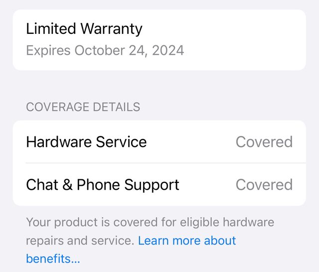 - 第一次開機使用為2023年10月24日,保固至2024年10月24日。