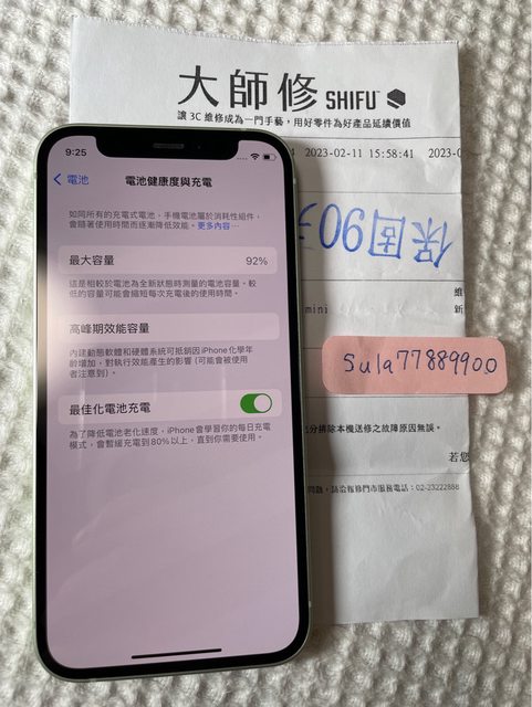 [商品照/補充說明] 換過原廠電池會附上維修單,目前電池92%,正面些微使用痕跡,平