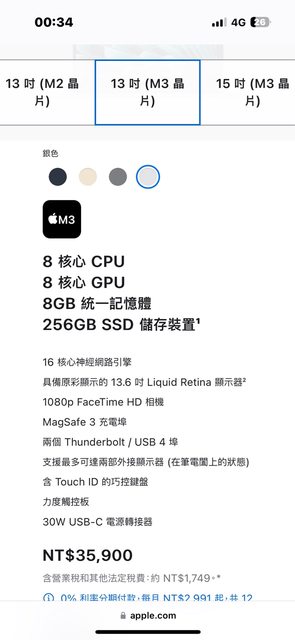 [規格] MacBook Air M3 8G 256 13吋 銀