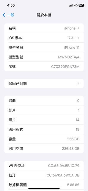 [型號] Iphone11 256G 白