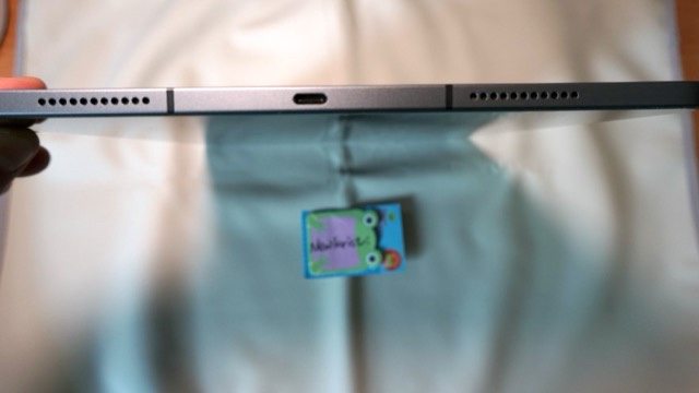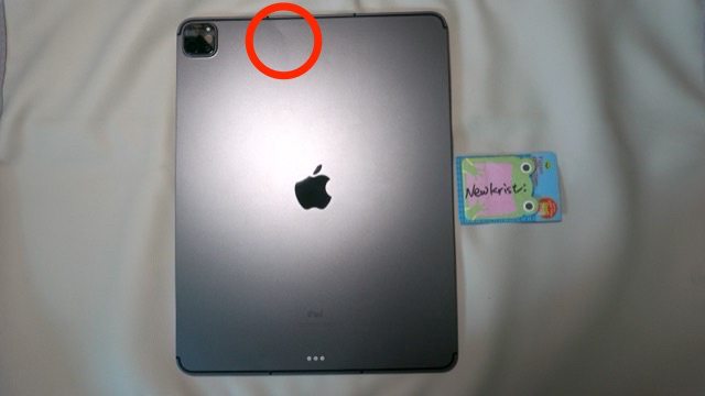 平板已貼玻璃保護貼,背面紅圈處有凹傷,邊框有使用痕跡,平板上方有點微彎,其餘功
