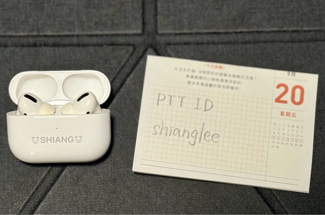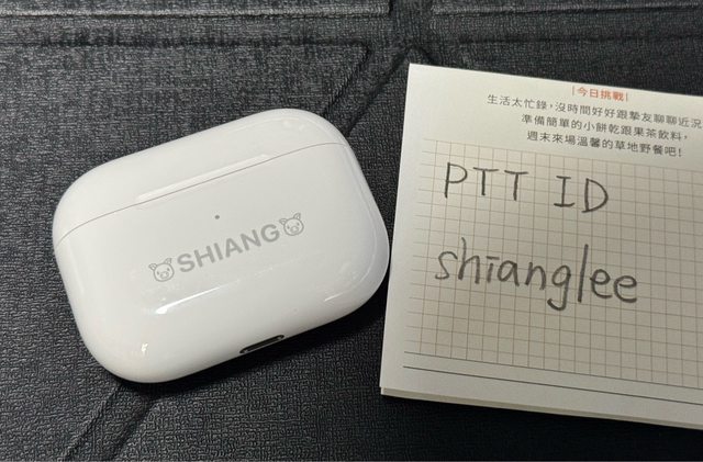 1.充電盒正面有刻字Shiang 與豬的圖案。