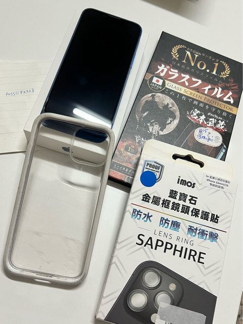 [盒裝配件] 玻璃貼*1(未使用) 、全新鏡頭貼*1、犀牛盾邊框殼*1 原廠盒(無充電線)