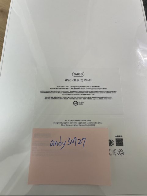 標題[販售] 雙北 全新iPad 9代 WiFi 64G 銀(售出)