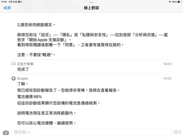 8/10官方查詢電池健康度為88%