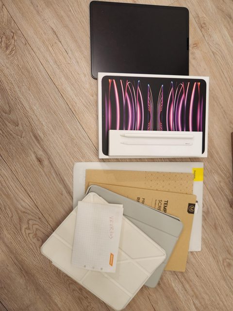 2. 二手Ipad pro (M2) 128G+ apple pencil 2 + 一片全新類紙模保護貼+二片鋼化保護貼 + 兩個使用過的保護殼