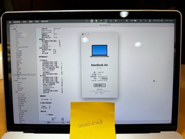 標題[販售] 雙北 MacBook Air M1 8G 512G 銀色