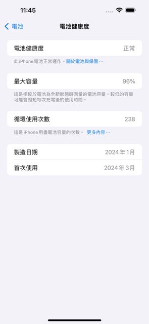 電池健康度96%