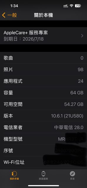[保固] 2024/7/17購買,有買apple care 保固到2026/7/18