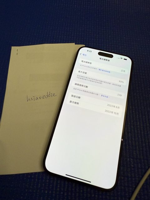 電池健康度93%,循環次數239次