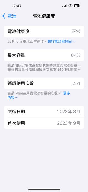 無維修紀錄,電池健康度84%,外觀無損傷,全機包膜+保護貼