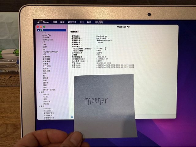 1.6 GHz 雙核心Intel Core i5/8G DDR3/128G SSD/注音鍵盤