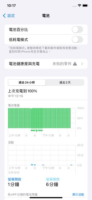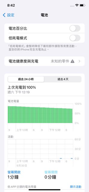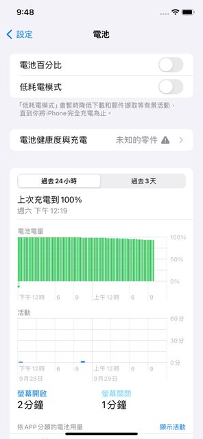 電池有換過副廠的,無法看健康度;附上待機耗電情況