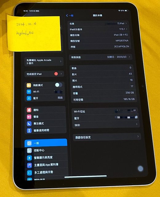 [型號]i Pad (第十代)Wi-Fi 256GB