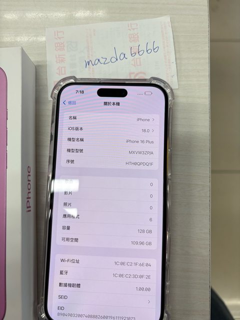 標題[販售] 台中 iphone 16plus 128G粉紅色