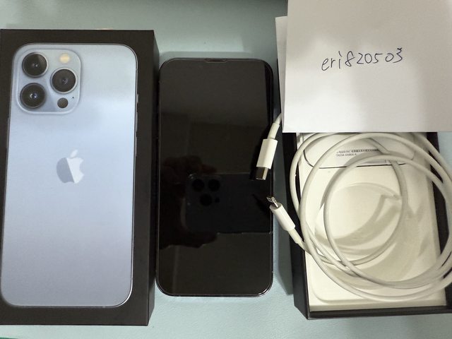 [型號] iPhone13 pro 128GB 天峰藍 [規格] 128GB [保固] 過保 [盒裝配件] 充電線 原盒 [售價] 13,000 [交易方式/地點] 高雄三多面交(現場轉帳) [連絡方式] 站內 [商品照/補充說明] 電池健康度80%, 配件及外觀如圖