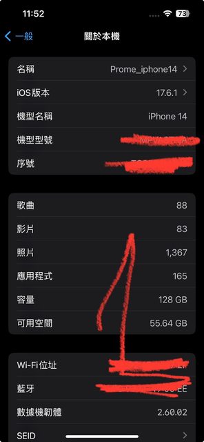 [型號] iPhone 14 [規格] 128GB 紅 電池84% [保固]已過保,使用狀況良好 [盒裝配件] 附盒、充電線(c to lighting)、贈保護殼(原來舊的)、保護貼 [售價]NTD 13,500元 [交易方式/地點]台北捷運奇岩站,捷運北投站(ATM領現或網銀轉帳) [連絡方式] 站內信 附上機器照片如下