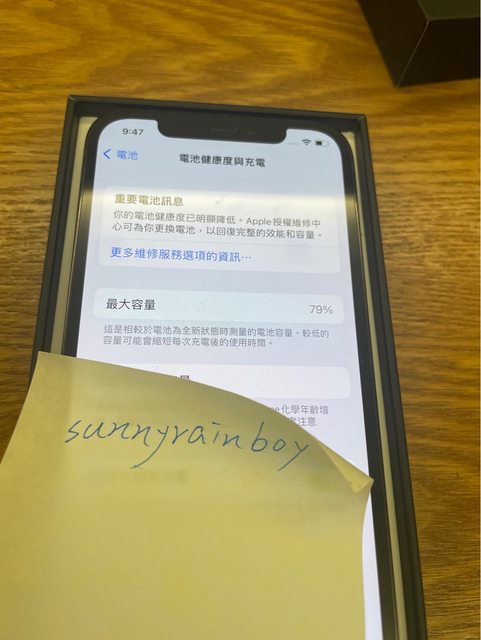 電池健康度79%,正面螢幕有兩個地方有傷痕,反應在價格上,不影響使用,貼螢幕保護