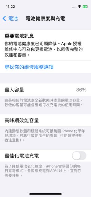 電池健康度:86% 無換過電池