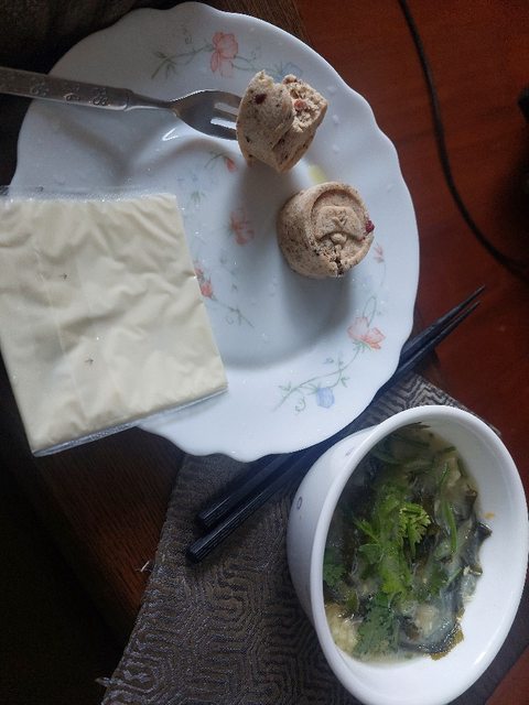 塞一把青菜下去,還比較能飽足感,當天沒工作卡路里也比較不高(一碗味噌海帶菜湯+含