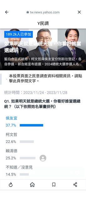 → SydLrio: 台Y早就被老藍畜佔領,哪個年輕人會在Y上投民調 11/28 08:50