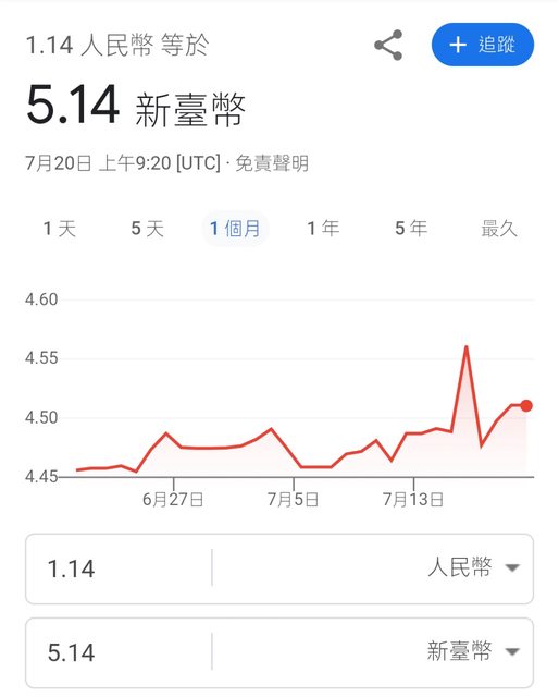 推 abx310492: 現在是台幣匯率跌欸 07/20 18:23