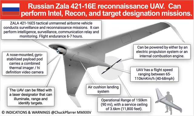 俄羅斯 Zala 421-16E 偵察無人機可以執行