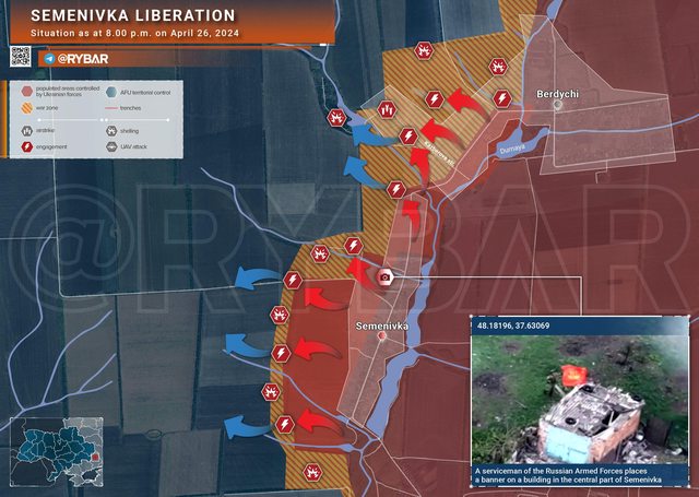 在謝梅尼夫卡,俄羅斯部隊成功地將烏軍