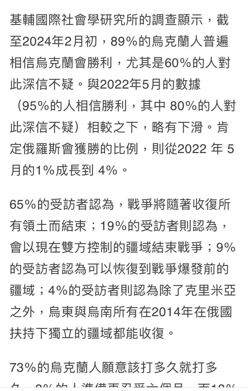 → jobli : 從2022年5月戰爭剛爆發時的59%,上升到72%;認為 05/04 13:55
