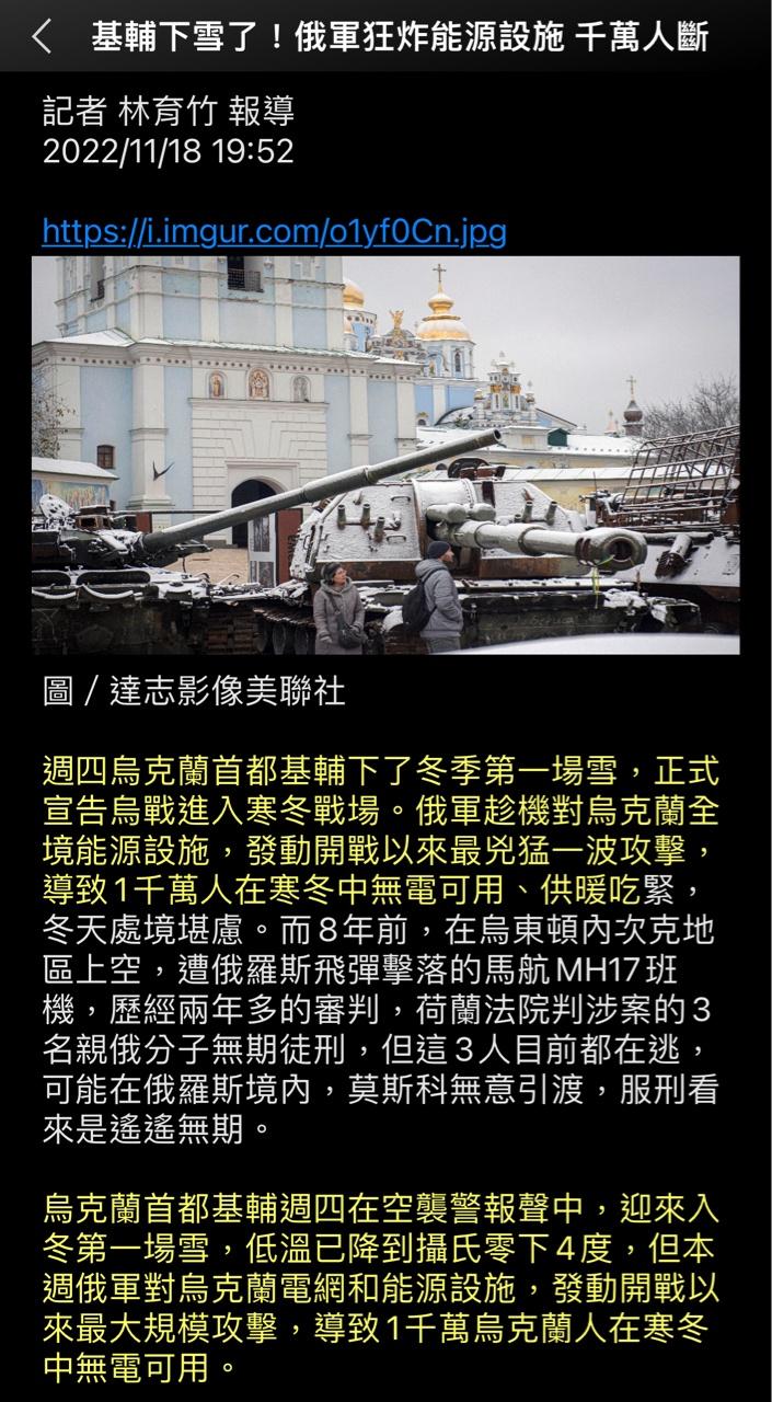 afv : 之前烏國才遇過冬天被打電力系統打到差點崩潰,是靠 05/04 13:13