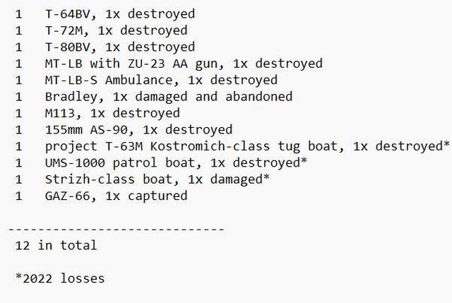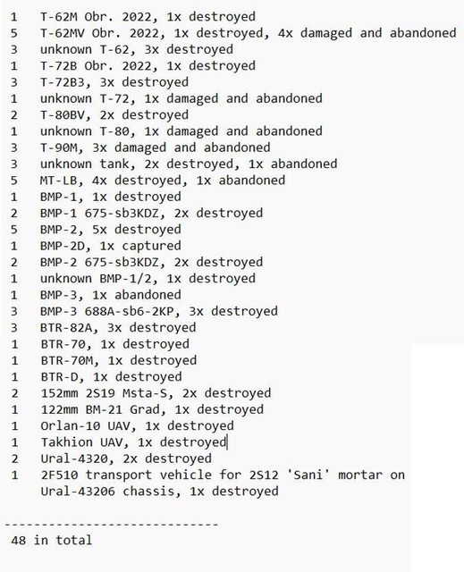 目視確認損失軍事裝備統計 2024.05.02 ~ 05.04