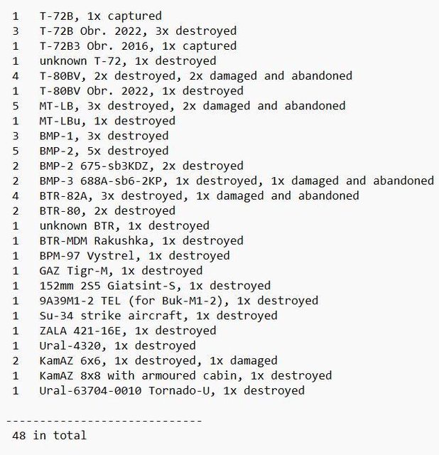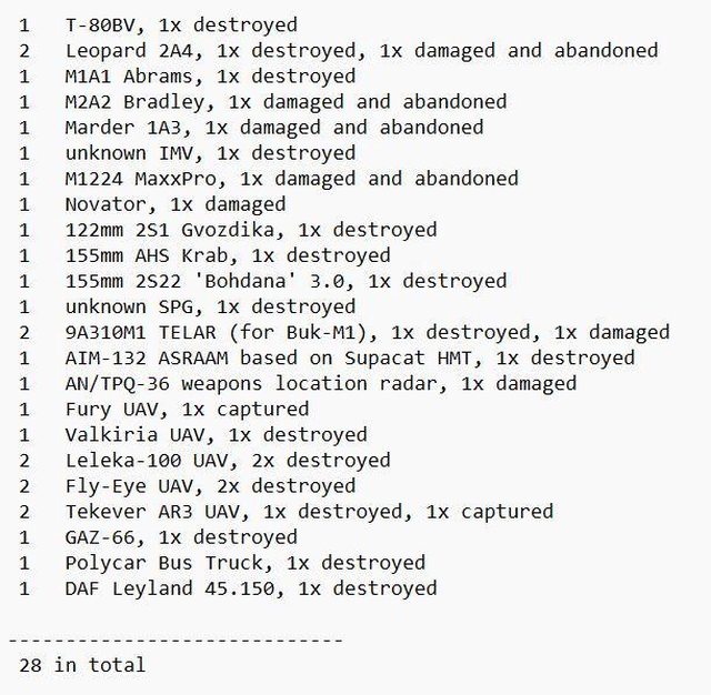 目視確認損失軍事裝備統計 2024.05.09 ~ 05.11