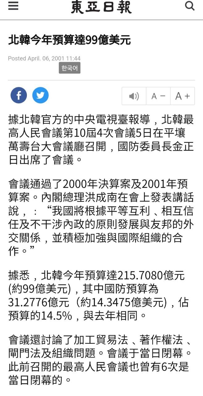 → ja23072008 : 外界估計朝鮮軍事預算是GDP佔比14%以上起跳。如果 05/18 01:10
