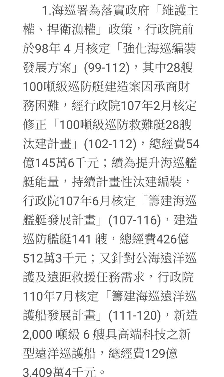 噓 ja23072008 : 海巡造艦規劃實際核定跟編列預算以及執行還是要到 05/20 16:13