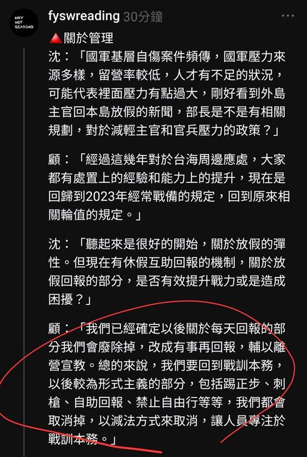 → chyx741021 : 義過多不符合戰訓本務等項目,都會加以取消」 06/06 11:11