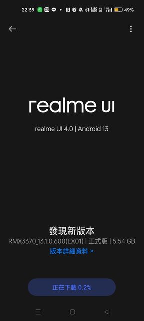 這次的GT eno2的更新版本號碼是RMX337_13.1.0.600(EX01)正式版,這次的容量也略大,