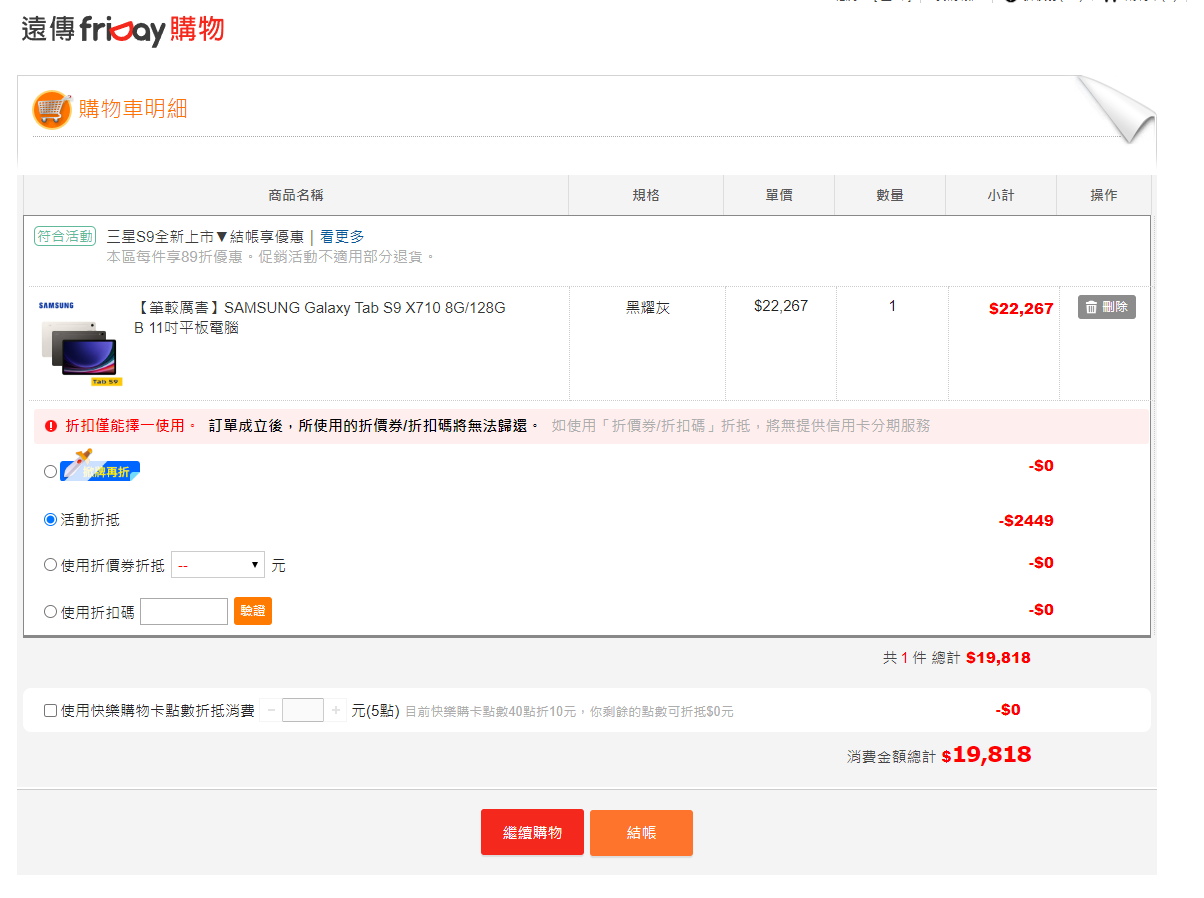 推 Purin777 : 三星商城有問題就直接問客服最好免得踩雷 11/12 03:51