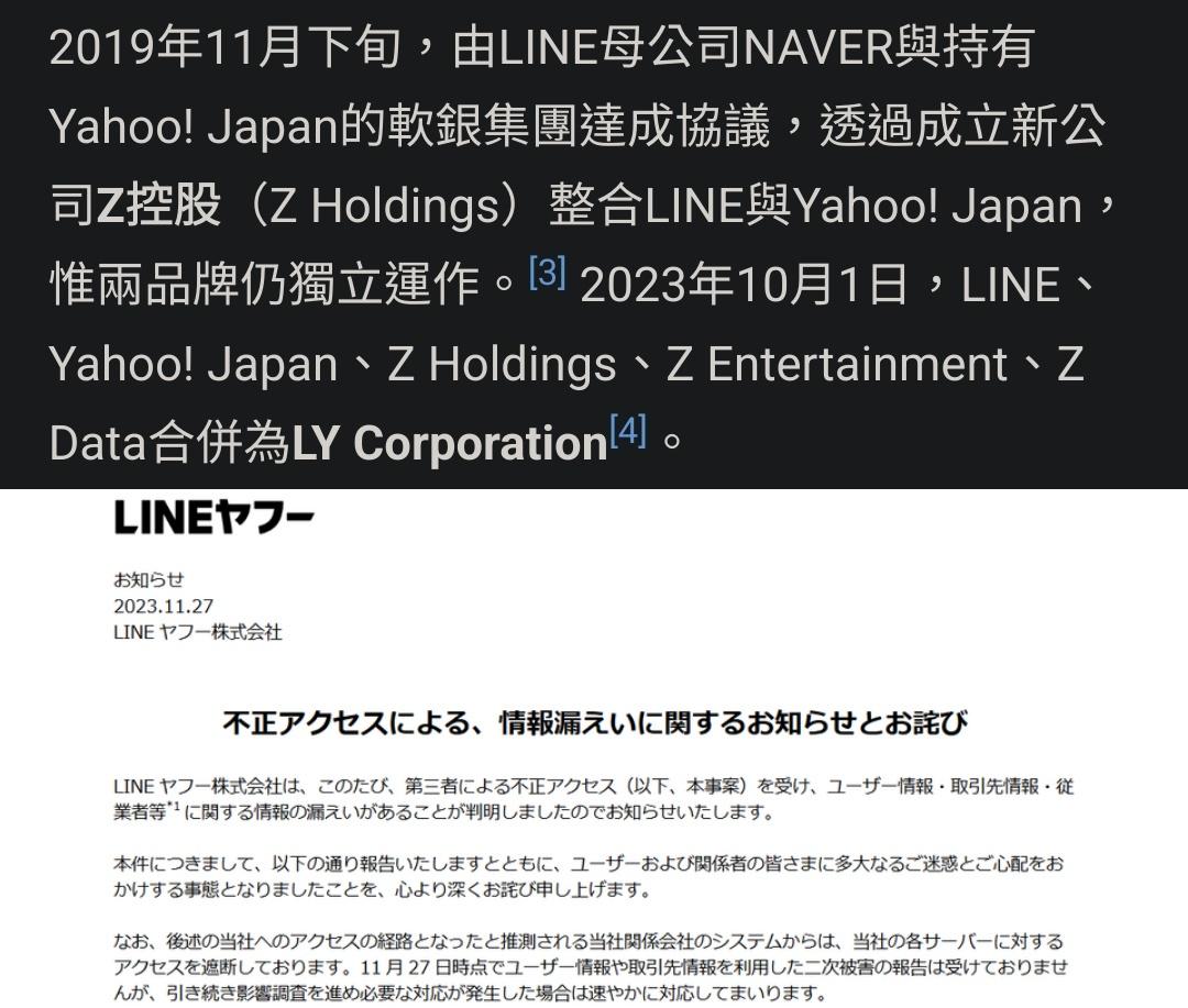 由於透過Naver系統進行未經授權的訪問,導致LINE雅虎公司上大約52萬條個人資訊被洩