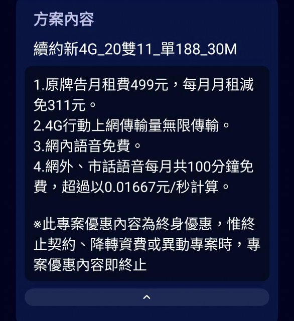 : 2.其餘資費減免等等之類的都是終生優惠,所以資費是不會改變的