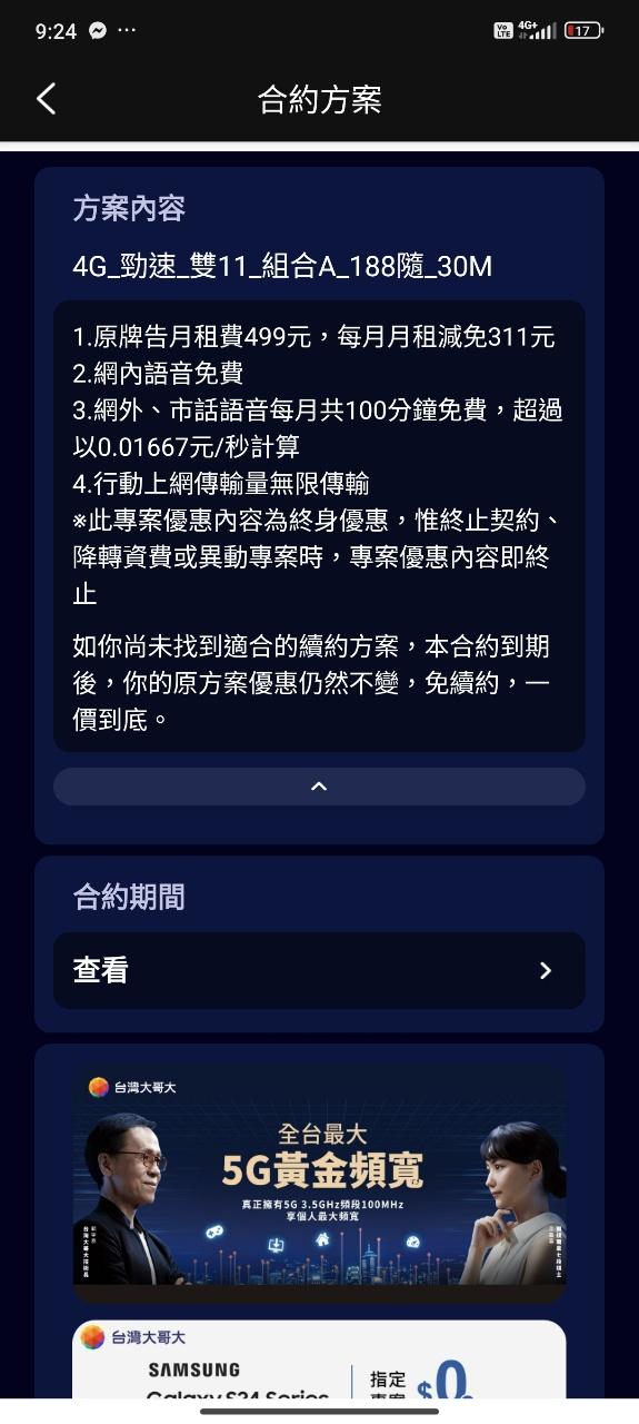 → affectsnow : 台哥大是有399不限速方案,方案名稱是榮耀英雄,不 04/23 17:16