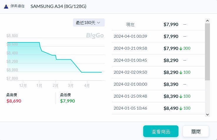 → cowardooooo : A34的8/128不容易找到(查到遠遠的淡水有,約8500), 04/29 06:48