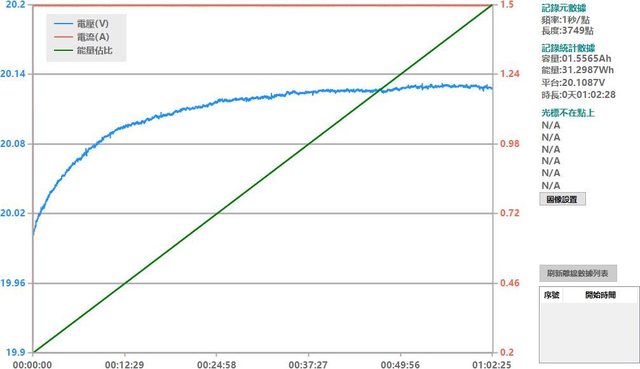 ▼行動電源模式各組放電V/A的放電mAh、放電時間、放電Wh、Wh比例百分比,最高可用Wh