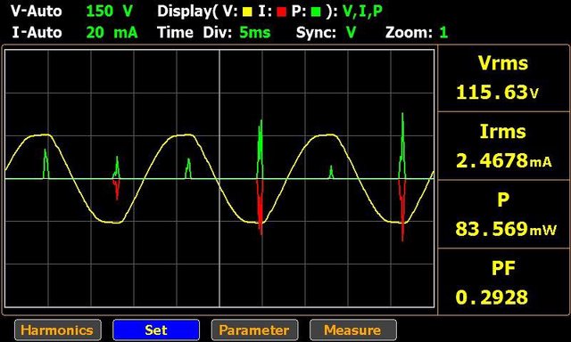 ▼連接交流電,未接任何裝置且電池完全充飽時的消耗功率83.5mW