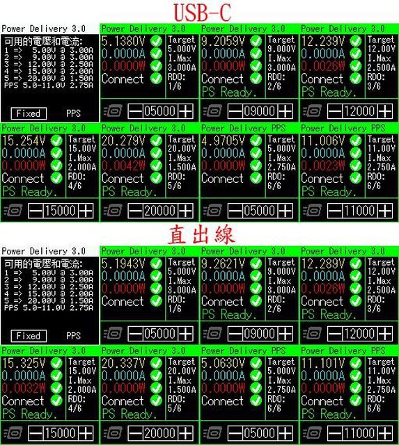 充電器模式直出線輸出:5V/3A、9V/3A、12V/2.5A、15V/2A、20V/1.5A、PPS