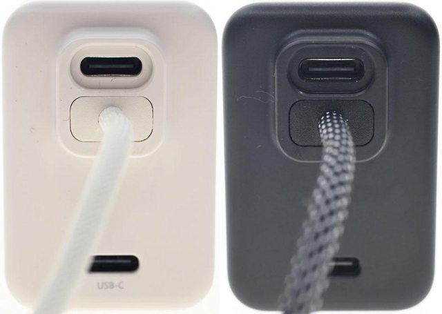 ▼米白版(左)與黑色版(右)IDMIX MR CHARGER CH10 Chill豆腐 30W雙模行動電源頂部凸