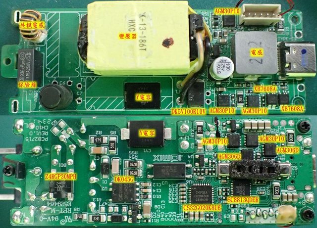 成,其他還有2個芯控源AGM306D MOSFET及3個AGM30P10 MOSFET